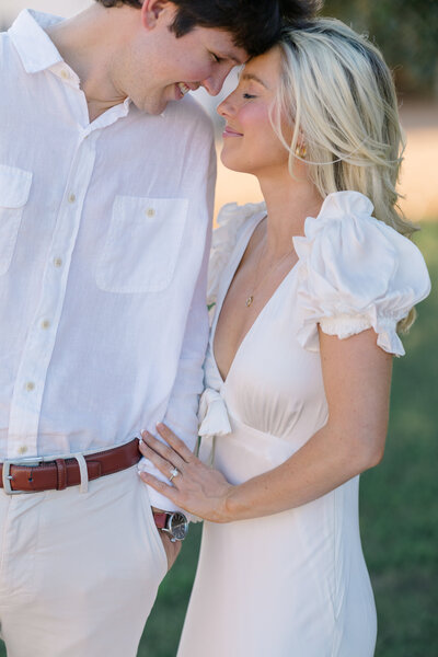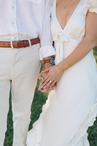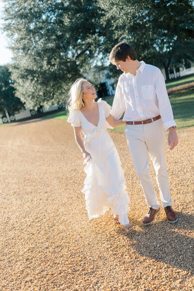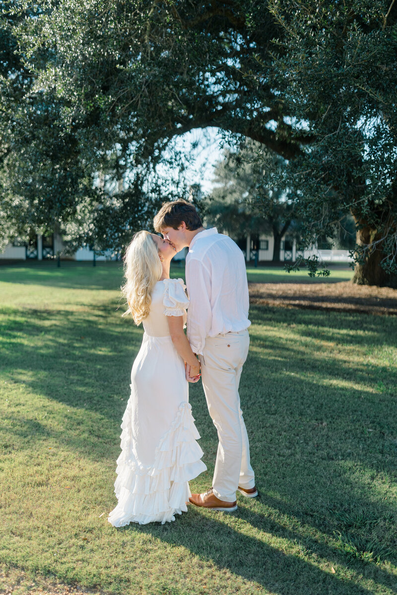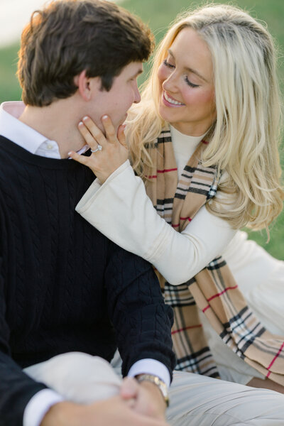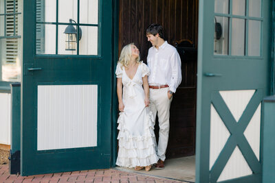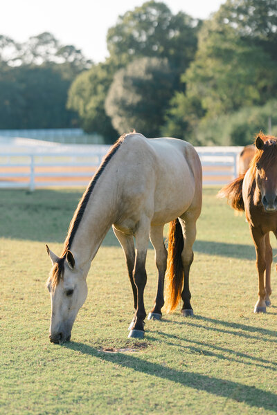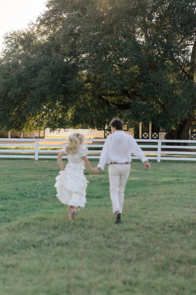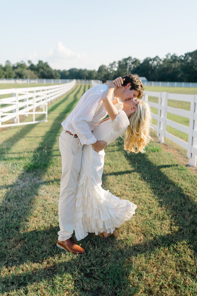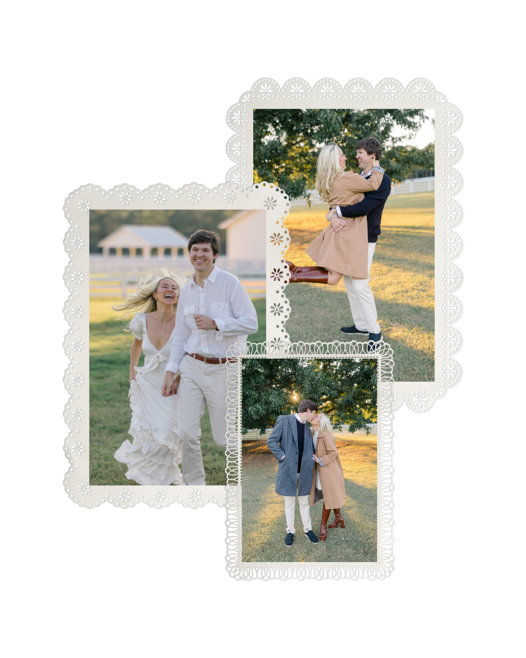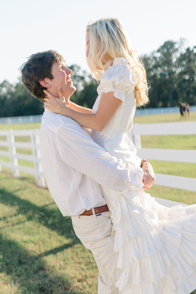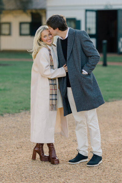 Set on the Georgia countryside, their engagement session unfolded among white fence-lines, open fields, and grazing horses, each detail echoing southern charm. Despite the warm 80-degree day, the couple embraced the moment in layered trench coats, capturing that perfect blend of polish and authenticity.